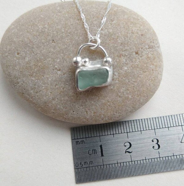 Authentic Yorkshire coast seaglass mounted in a hand crafted Sterling silver bezel adorned with granules of recycled silver.