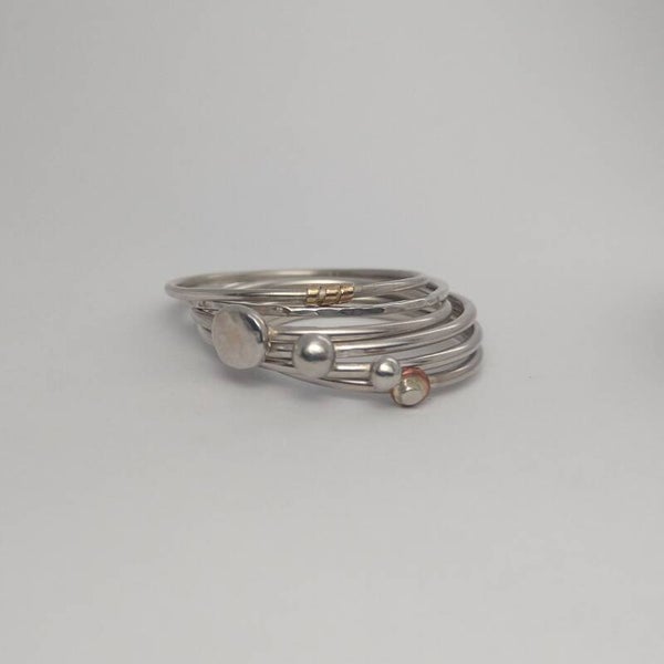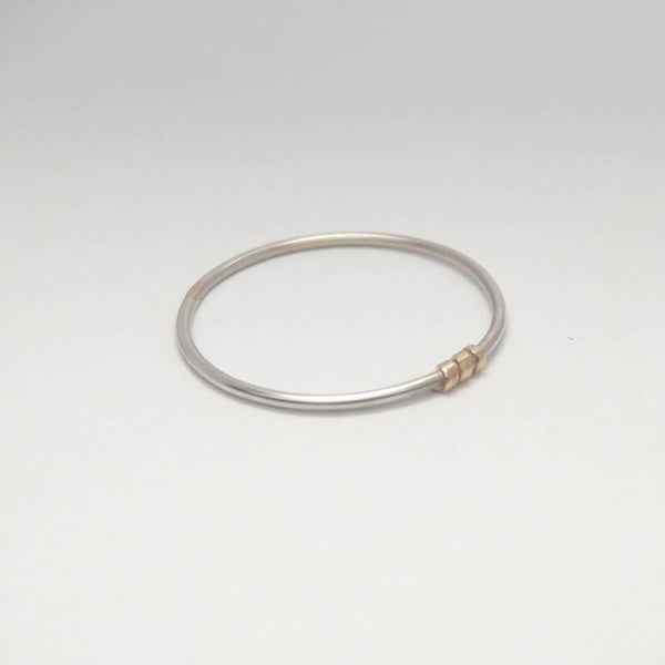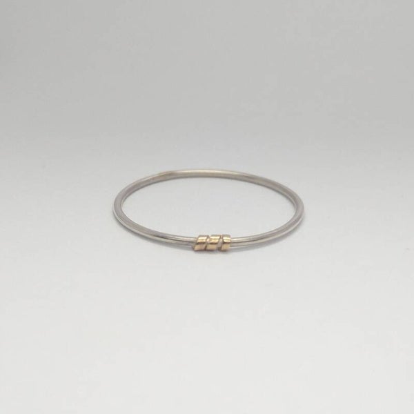1mm diameter Sterling silver ring with 9ct gold decoration.
