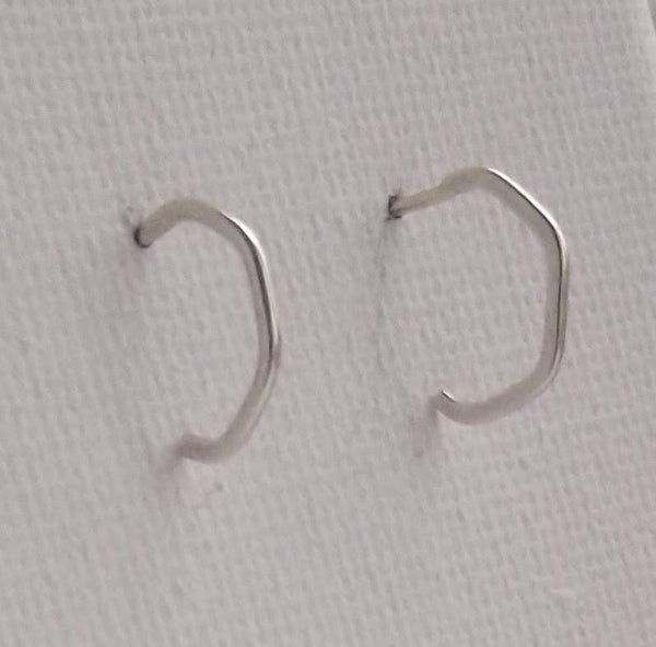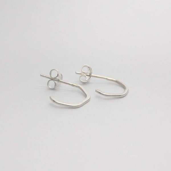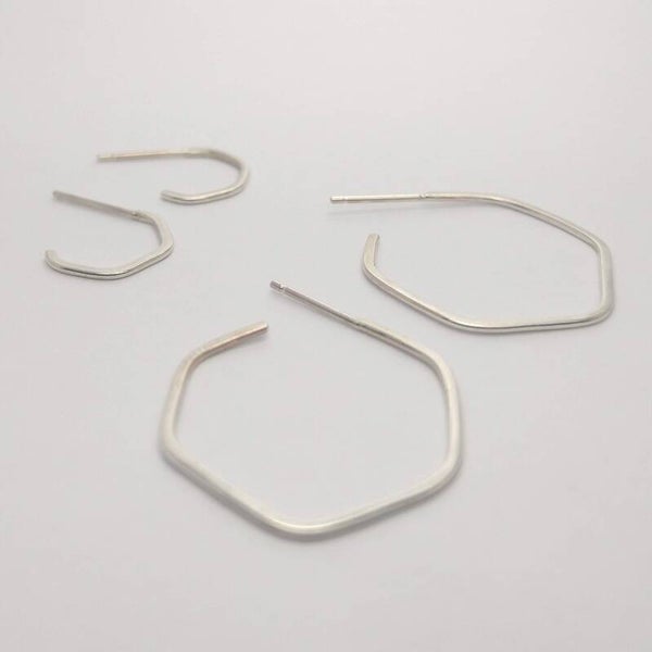 Hand crafted from solid silver wire to form half hexagon hoops.