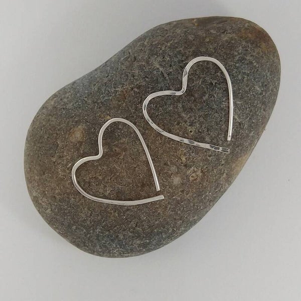 Hammered texture on the front part of the heart. Polished on the threaded through wire.