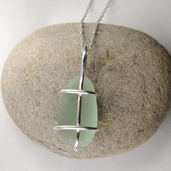 Sterling silver claw-set seaglass pendant